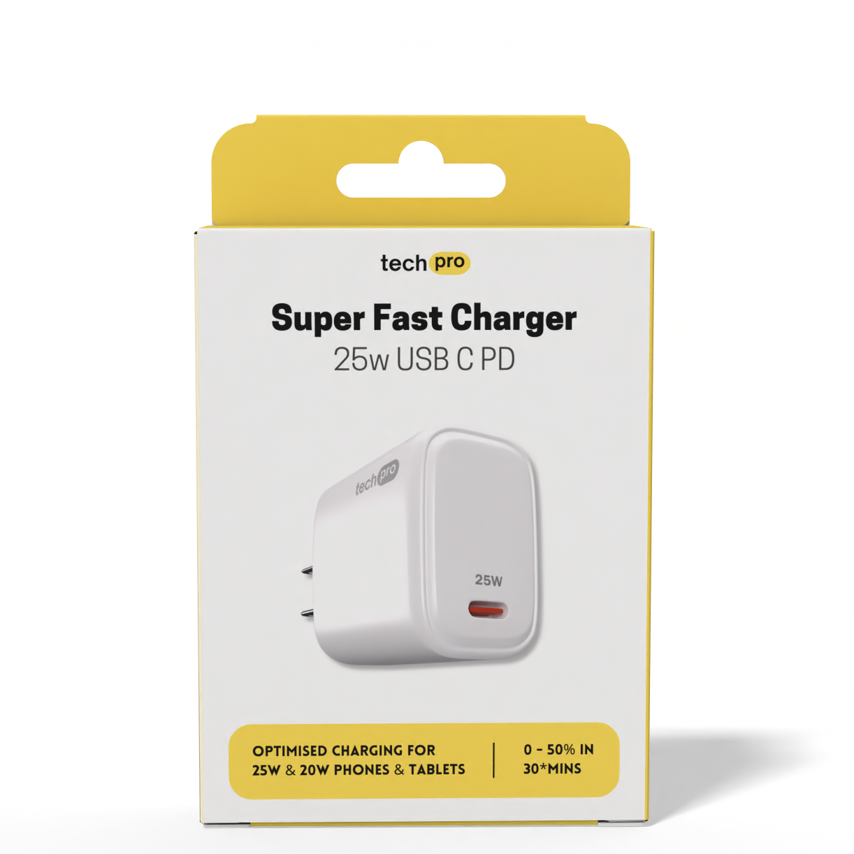🔌 TechPro 25W PD USB-C Super Fast Wall Charger