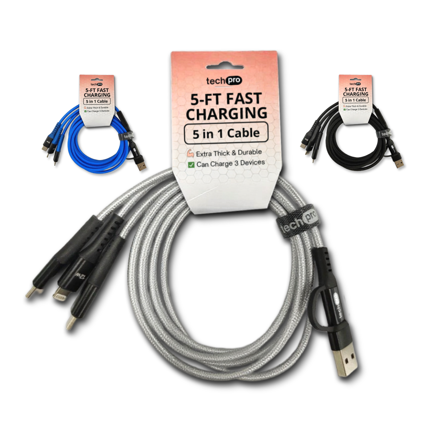 Buy 5ft 5-in-1 Multi Charging Cable in Hang Tag Packaging